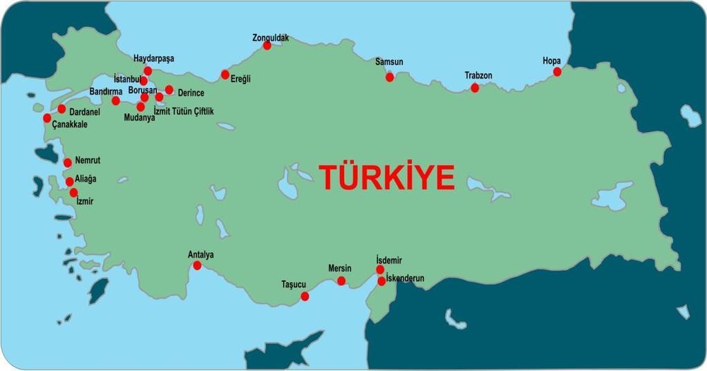 イスタンブールのベイリクデュズュに位置するMarportは、1996年にLimar Kumport Terminal(現在のMarport East Terminal)として営業を開始しました。その後、2001年にはMarport Main Terminal、2003年にはMarport West Terminalが建設されました。マーポートの年間処理能力は190万TEUに達しています。クンポート・コンテナターミナルは、イスタンブールのヨーロッパ側、イスタンブール海峡の西22マイルのところに戦略的に位置しています。クムポート・ターミナルはヒンターランドとの接続に優れています。クムポートは1994年にターミナル業務を開始しました。現在では、トルコの港の地図にあるように、5大陸の140以上の場所と直接つながっています。トルコで初めて18,000TEUの船舶が入港し、700メートルのドック構造を持つSOCAR Aliağa Terminalは、エーゲ海地域で最大の総合ターミナルであり、当初150万TEUのコンテナを取り扱うことができます。